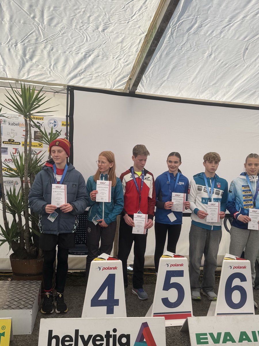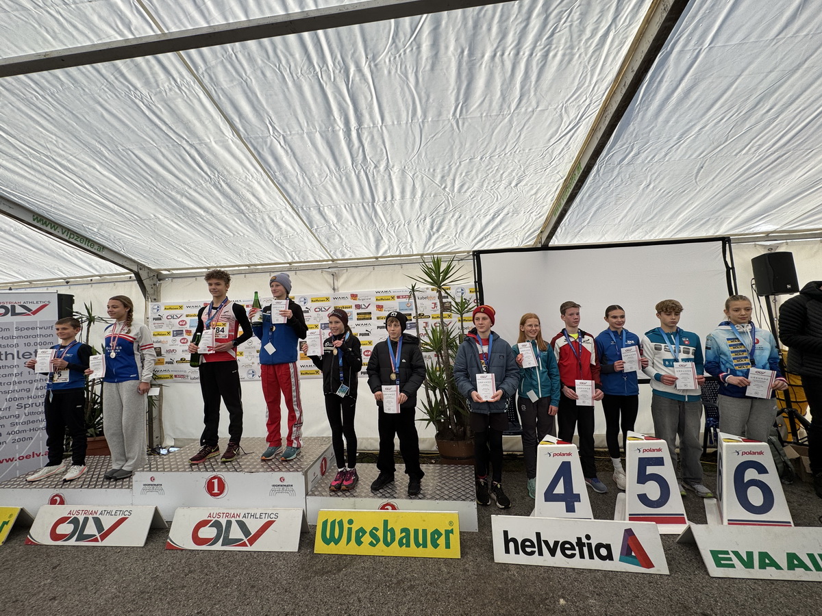 Bei eiskalten und winterlichen Verhältnissen im Burgenland zeigten unsere Girls groß auf. Die Strecke in St. Margarethen war durch den nächtlichen Schneefall und den böigen Wind herausfordernd-auch wenn es keine großartigen Bergauf-bergab-Passagen gab. Mit einer Dornenlänge von 15mm wagten sie sich auf die Runde-Strohballen und Holzstämme mussten übersprungen werden und eckige Richtungsänderungen waren dabei. Den Start machten die U14-Mädchen, wo über 50 Starterinnen die 1,6km Strecke in Angriff nahmen. Lilly Schweitzer und Valerie Aschenberger liefen in der ersten von zwei Runden vorne mit. Das Tempo war von Beginn an sehr hoch und das Feld zog sich weit auseinander. Lilly kämpfte bis zum Schluss um eine Top-Platzierung mit und durfte sich über einen 5. Platz freuen. Valerie kam als 9. ins Ziel und gehört damit ebenso zu den besten Läuferinnen in ihrer Altersklasse. Mit Magdalena Gneiss gemeinsam wurden sie in der Teamwertung Zweite und freuten sich riesig über die gewonnene Silbermedaille. Ebenfalls noch mit dabei war Ella Roither.